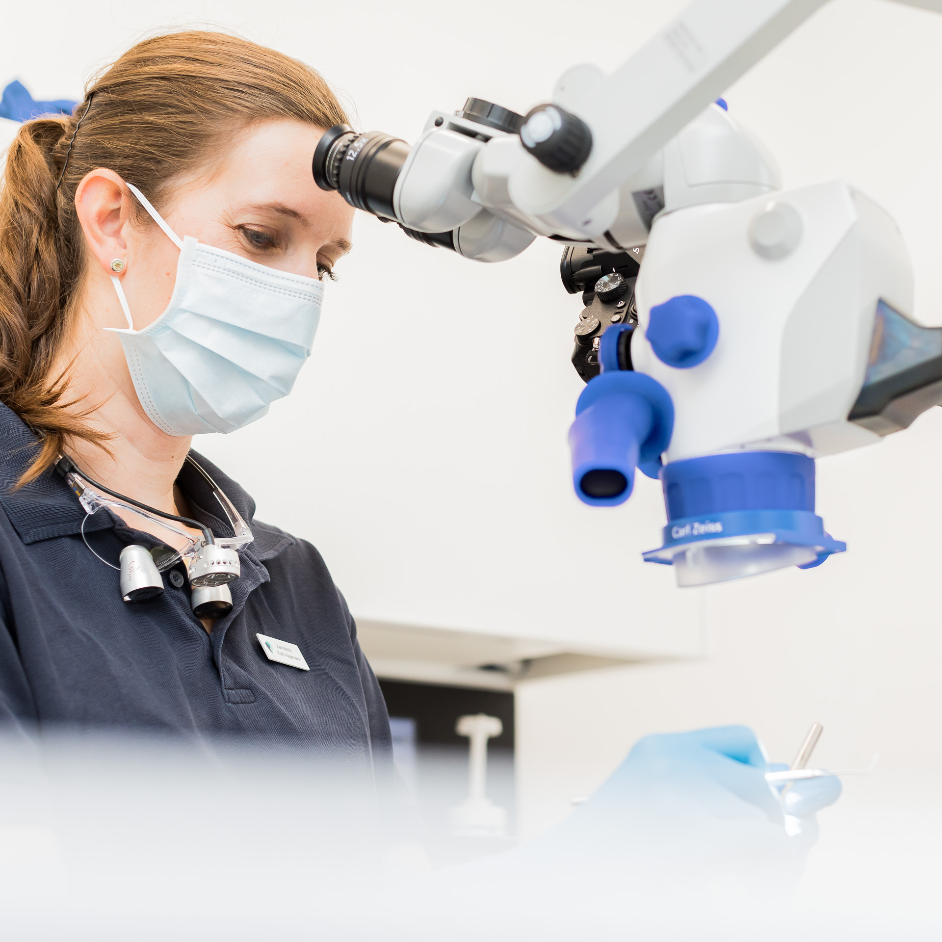 Unser Leistungsspektrum umfasst endodontische Primärbehandlungen, Revisionen, Therapien bei unvollständigem Wurzelwachstum oder nach Zahnunfällen, Implantologie, Parodontologie sowie mikrochirurgische Eingriffe.